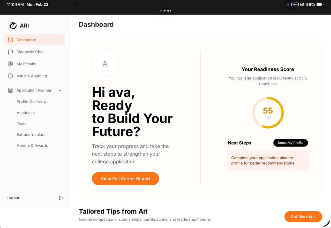 Ari is a conversational career and university guidance platform that helps students understand themselves first — then explore career paths and universities that actually fit.